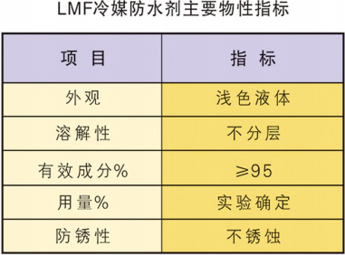 LMF冷媒防水劑主要針對工業(yè)二氯甲烷等與水不互溶的傳熱介質(zhì)開發(fā)的新型產(chǎn)品,該產(chǎn)品有利于使用二氯甲烷等易揮發(fā)類化學液體作為載冷劑的制冷系統(tǒng)正常運行,具有提高載冷能力,防冰堵冰爆,防銹蝕等優(yōu)異性能。