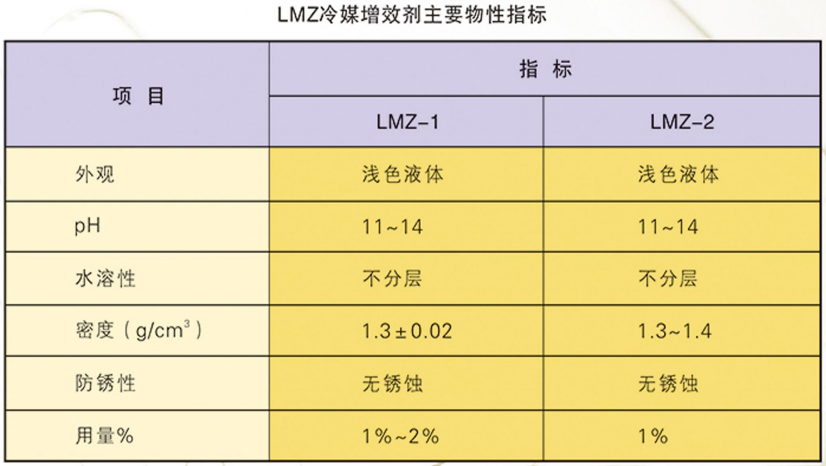 LMZ型冷媒增效劑為LM型冰河冷媒系列產(chǎn)品的補充代用品,開發(fā)本產(chǎn)品的首要目的是考慮到地處邊遠地區(qū)的廠家,由于長途運輸不便,不便直接添加冷媒,則可以選用該冷媒增效劑。因本品屬于濃縮型添加劑,用量僅為冷卻介質(zhì)水溶液的1%-2%,將其加入貴公司原來用的酒精、乙二醇、丙二醇或丙三醇等水溶液介質(zhì)中,便可以起到抑制揮發(fā),提高載冷能力,防止冷卻介質(zhì)銹蝕設(shè)備等作用,本品在防銹能力上尤為突出。由于以上這些作用,保證您的冷卻系統(tǒng)安全穩(wěn)定地運轉(zhuǎn),從而大大降低了運行成本,同時確保您的設(shè)備使用壽命延長一倍以上。