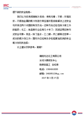 以上是我公司對《設(shè)計(jì)規(guī)范》提出的意見,同時(shí)也需要同行們的監(jiān)督和幫助,歡迎廣大冷庫業(yè)主,工程商,上下游企業(yè)來電咨詢冰河冷媒載冷劑制冷系統(tǒng)!