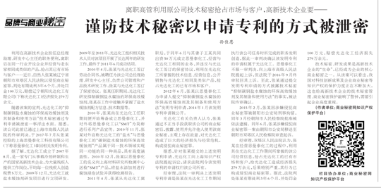 隨著該案的宣判,光達化工的“抑制碳鋼鹽水腐蝕的環(huán)保緩蝕劑及其制備和使用方法”技術(shù)秘密通過專利申請被泄密一事浮出水面。